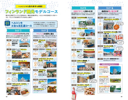 首都ヘルシンキだけではなく、タンペレやラハティなどがある湖水地方、トゥルクやオウルなどがある西部沿岸、カレリア地方、ラップランドまで! 都市の詳細をチェックしよう♪ ▼独特の文化や奥深い歴史を深掘りしたページにも注目 ページをめくるたびに、フィンランドの自然・文化・歴史・暮らしに触れられ、その魅力の奥深さを実感できます。観光スポットの紹介はもちろん、現地のライフスタイルや背景も感じられ、旅行ガイドとしてだけでなく、現地を深く知る教養書としても活用できます。