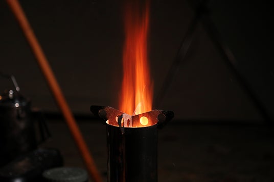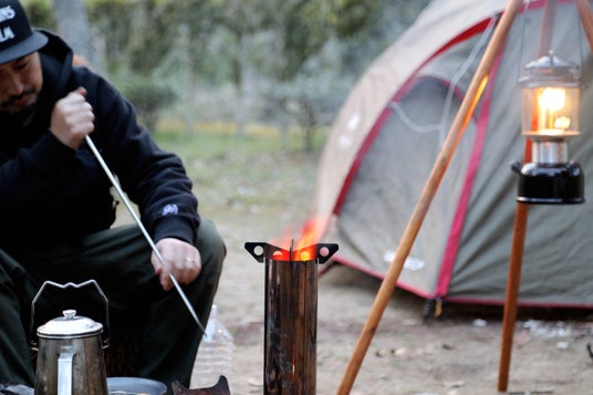 ドラフト効果(煙突効果)を利用して、少量の燃料で強い火力を生み出すことができる高い燃焼効率が特徴です。薪じゃなくても、木の枝や松ぼっくりなどの身近な材料を使って高火力が得られることから、キャンプでの使用はもちろん、非常時の備えとしても役立ちます。