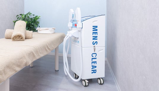 【 POINT.1 】最新の脱毛機「クリアプロ」を使用し痛みを軽減メンズクリアは、IPL(熱破壊式)×SHR(蓄熱式)のハイブリッド脱毛機を使用しています。照射面には光を効率的に通すクリスタル・サファイアを使用し、肌に接する部分をマイナス4度まで冷却。脱毛照射時に発生する熱を緩和し、痛みを軽減しています。