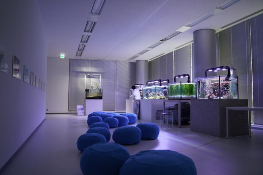 アクアリウムが設置され、自然の美しさや生態系への関心を高める環境。