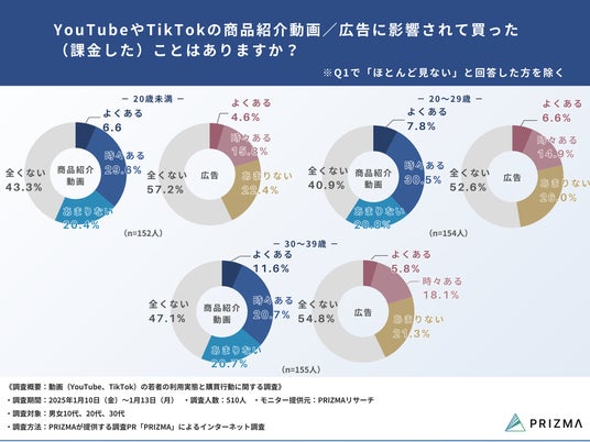株式会社PRIZMA(https://www.prizma-link.com/press)は、10代~30代の男女510名を対象に、年代別の視聴頻度や視聴時間、人気のジャンル、さらにはこれらのプラットフォームが購買行動にどのような影響を与えているのかといった「動画(YouTube、TikTok)の若者の利用実態と購買行動に関する調査」を実施しました。