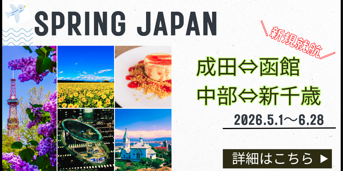 成田からは函館へ、中部からは新千歳へ。この度、待望の新規就航いたしました!