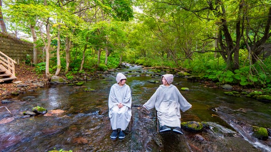 プライベートサウナは、薪式ストーブでじっくりと温める本格派。サウナ室から一歩外へ出れば、春の空気に包まれた外気浴スペースがあり、目の前を流れる朝里川で雪解け水の気配を感じながら“ととのう”体験。