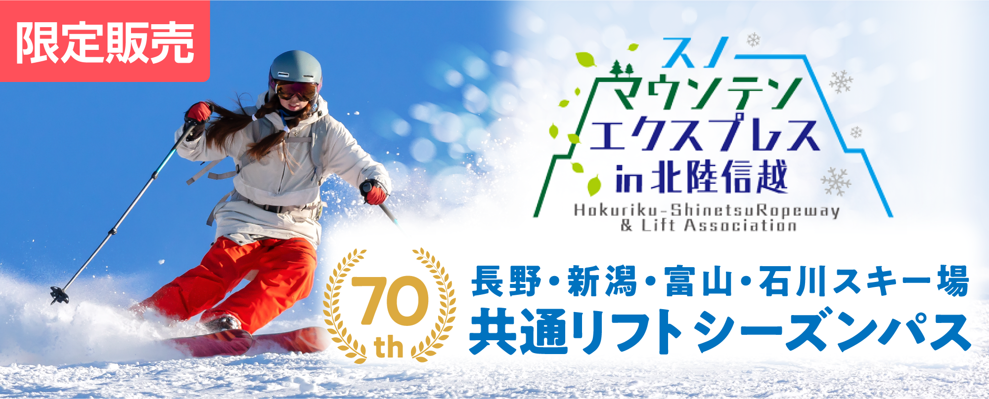 北陸信越山岳観光索道協会は、創立70周年を記念した初の試みとして、長野県・新潟県・富山県・石川県の4県にまたがる対象スキー場を共通で利用できる「70th スキー場共通リフトシーズンパス」の販売を決定いたしました。