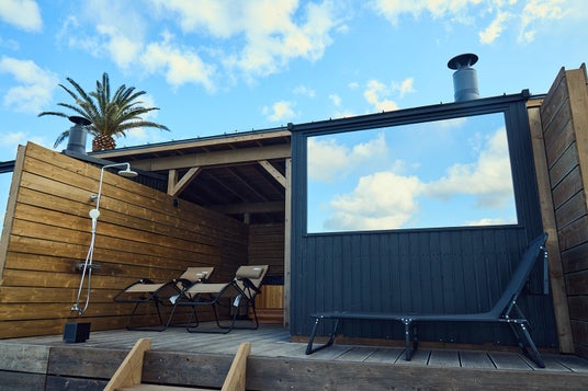 サウナストーブには世界のトップブランドHARVIA製の薪ストーブサウナを採用。利用者自らが薪をくべるセルフ式のため温度調節も自由自在。キャビンの窓はマジックミラータイプのため、ビーチから室内が見えないプライベート仕様となっています。