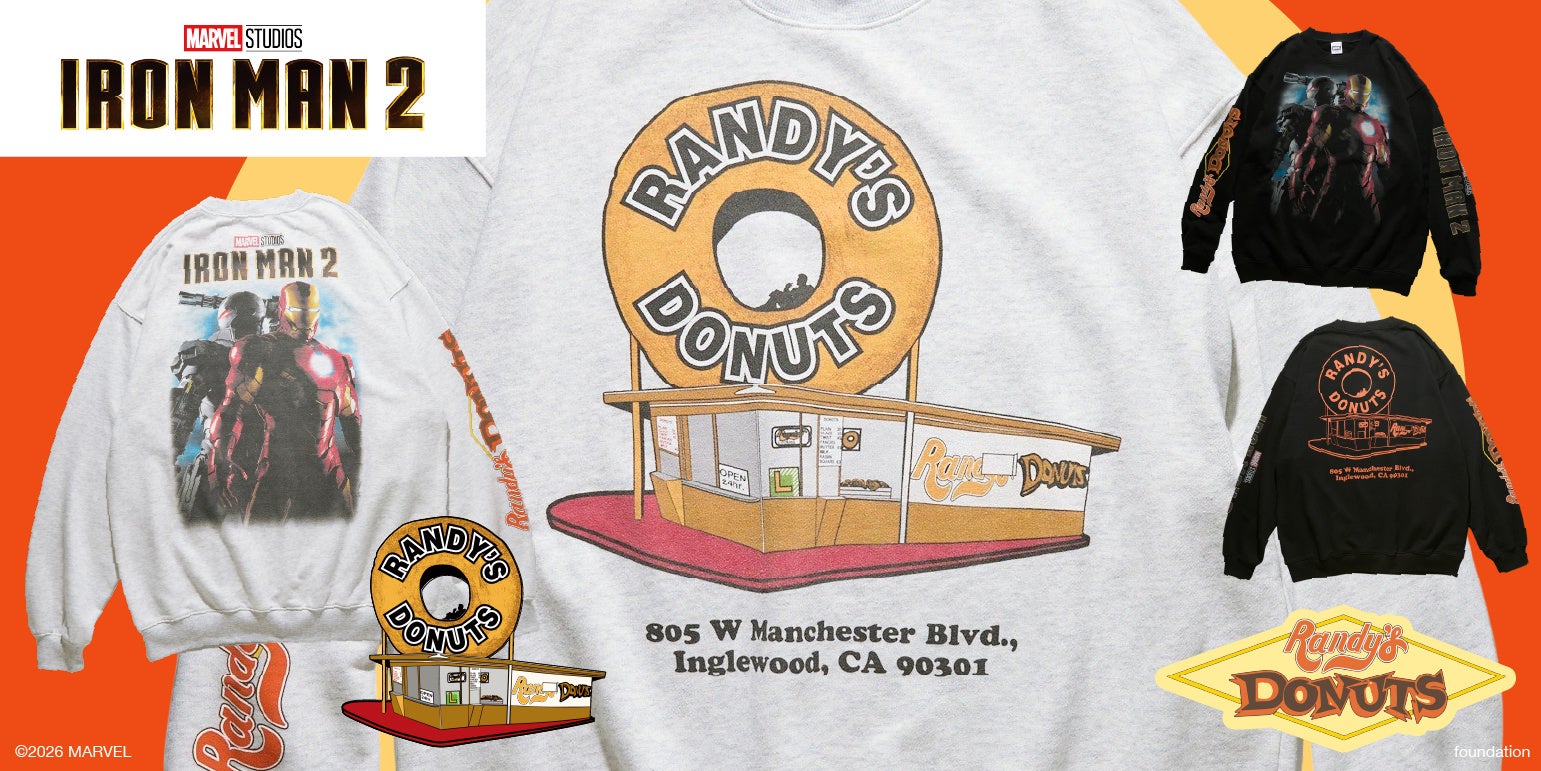 株式会社デイトナ・インターナショナル(本社:東京都渋谷区/代表取締役社長 高橋 正博)が運営するセレクトショップ「FREAK’S STORE(フリークス ストア)」は、当社が運営する映像事業「フリークスムービー」企画による、2010年公開の『アイアンマン2』とLA名物のドーナッツショップ「ランディーズドーナツ」とのTシャツ3型・スウェット2型のスペシャルアイテムを、1月23日(金) より公式オンラインストア「Daytona Park(デイトナパーク)」及びFREAK’S STORE一部店舗にて販売開始。 KEY DESIGN POINTS