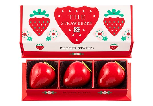 可愛すぎる見た目はもちろん、苺そのものより苺の美味しさを楽しめる『ストロベリーシーズン』。なめらかな口どけにこだわった“ホワイトチョコレートベースの苺の生ショコラ”と、とろっと甘酸っぱい“あまおう苺ソース”。2つの苺のうまみを、つやつや輝く真っ赤なグラサージュで包みました。ひとくち頬張れば、やわらか食感にきっと驚いてしまうはず。お口いっぱいにあふれる苺の美味しさをお楽しみください。