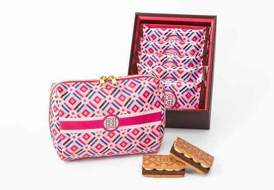 ショコラバタースイーツ当店人気No.1『バターホイップショコラサンド(5個入)』を、レディライクなオリジナルポーチとセットにしました。そっとバッグに忍ばせて、華やいだ気分を楽しんで!