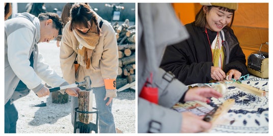 UNO2025では、都会の中で焚き火を囲みながらリラックスした時間を過ごしたり、二人でオリジナルのアイテムを作るワークショップを楽しむことができます。