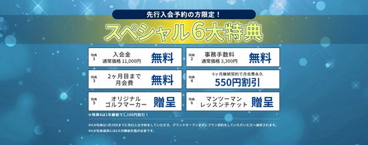 現在、月会費永久割引など、6大特典で入会できる最もお得なキャンペーン実施中。特典適用での入会をご希望の方は、まずは無料先行入会予約(1月29日まで)をお済ませの上、詳細案内をお待ちください。