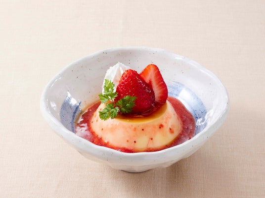 さと自慢の「昔ながらの店仕込みプリン」と甘酸っぱいいちごのコンビでどうぞ。