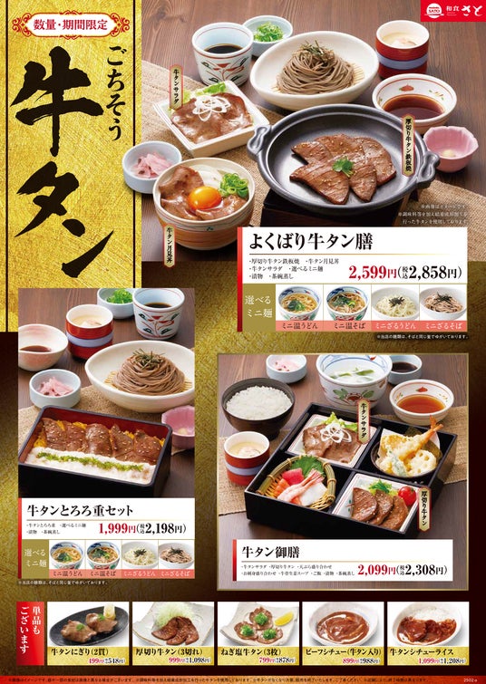 【和食さと】期間限定で大復活!!『ごちそう牛タンフェア』がスタート!!