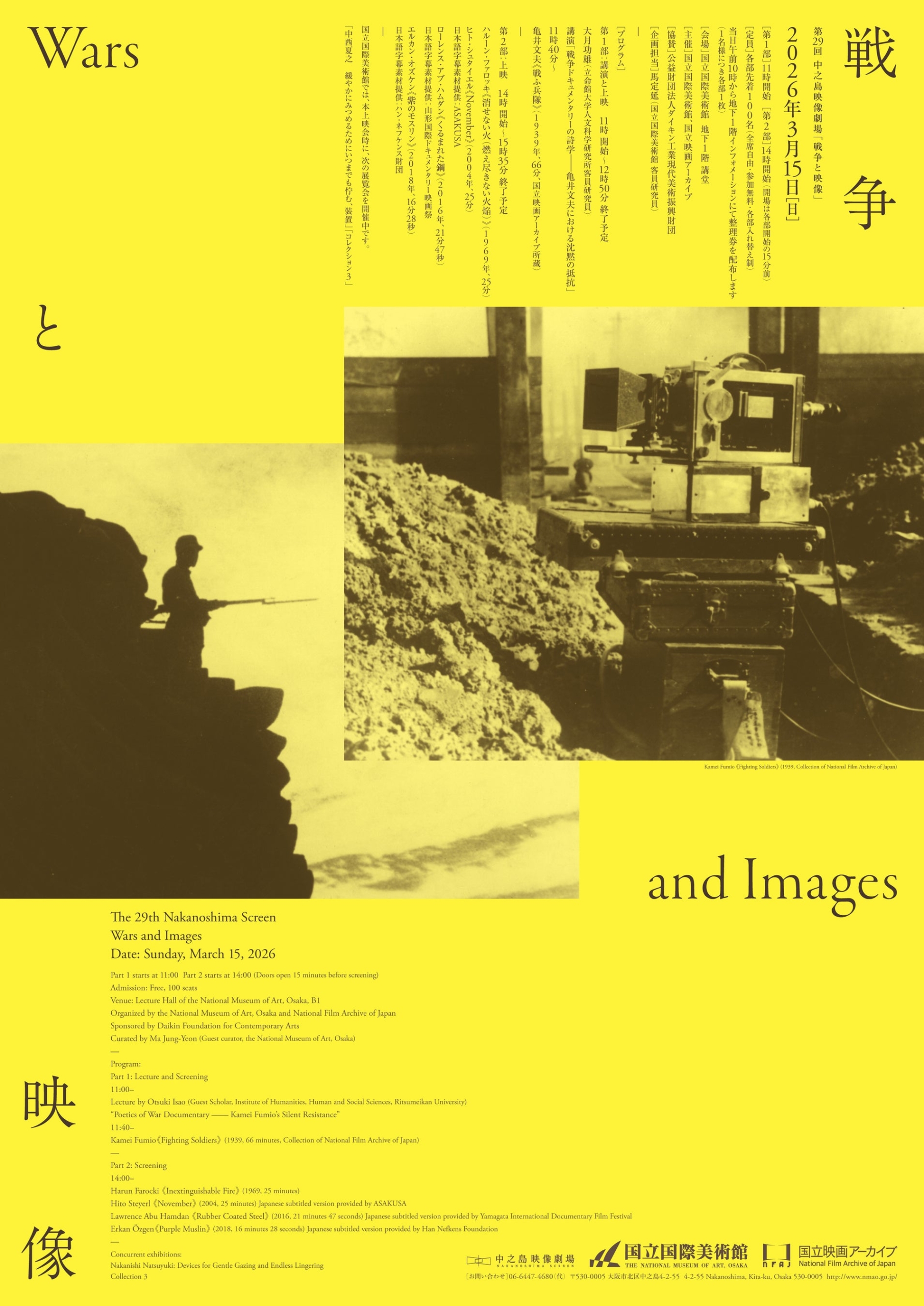 【国立国際美術館】第29回中之島映像劇場「戦争と映像|Wars and Images」2026年3月15日(日)開催