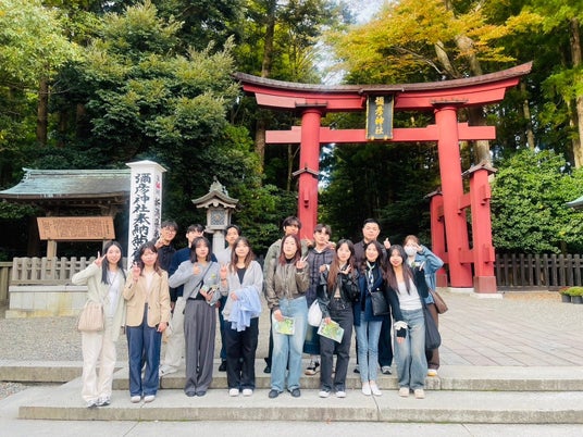 今回、実習を行った日本人学生4名は今年7月にTOPIK(韓国語能力試験)の最上級である6級を取得しました。日ごろの学習成果を発揮すべく、また通訳案内士の業務体験として案内役を務めることになりました。新潟市内観光では、1日目に浴衣を着て旧齋藤邸別邸を見学し、2日目には新潟名物のタレカツ丼を味わったり、プリクラやクレーンゲームに挑戦したりと日本の学生生活体験プログラムを実施しました。また、弥彦観光では弥彦神社を訪れ、色づき始めた紅葉と厳かな神社の雰囲気を堪能しました。