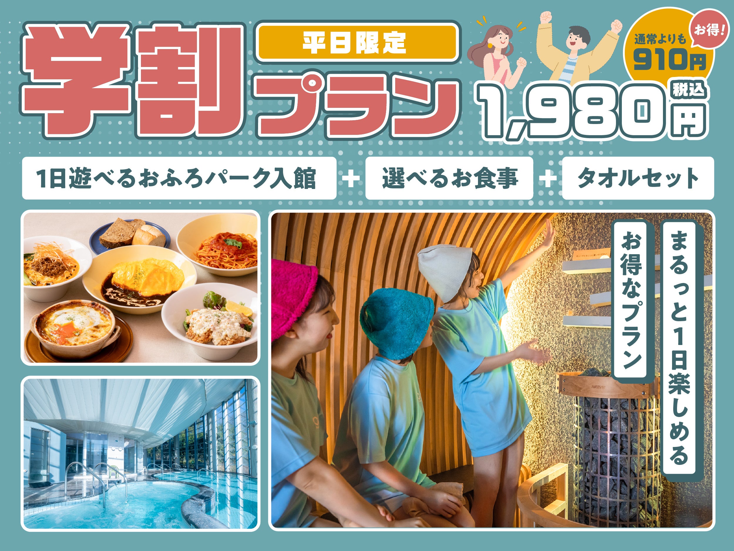 <学生限定! 入浴+お食事セットの学割パックプラン> 開催期間:2026年3月2日(月)~ 平日限定