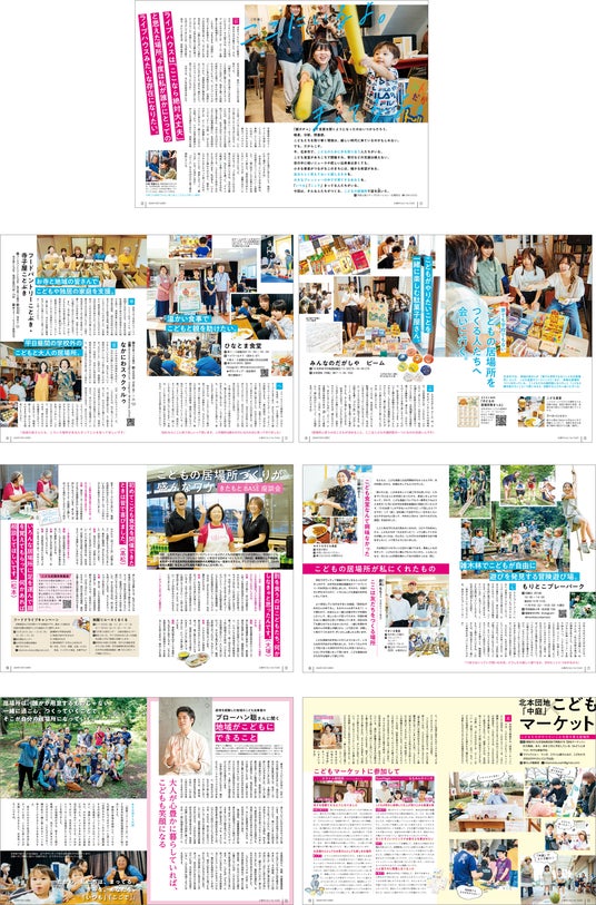 大学生がつくる駄菓子屋やこども食堂、雑木林を活用した遊び場など北本独自のこどもの居場所9か所を取材。また、北本市のこどもの居場所づくりを支援する「きたもとBASE」事務局の対談や、虐待の当事者活動を行うブローハン聡さんのインタビューを行い、こどもの居場所づくりの意義や価値を多角的に捉え、北本に住まう子どもたち、そして子育て中の保護者を応援する内容となっています。