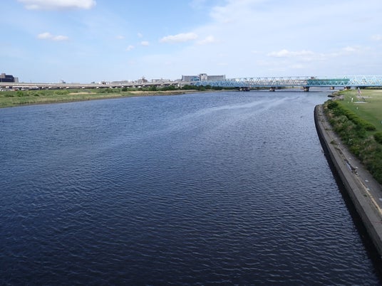 ヨシ原や市民の憩いの場となる河川敷が広がる、現在の荒川放水路
