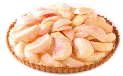 〈デリス〉 桃のタルト (1/10カット)税込1,080円 新鮮な桃をふんだんに使用。上品なクリームが桃の味わいを際立たせます。サクサクと口どけの良い生地とも相性抜群。ピーチ特集(ハート) ■地下階1階 ごちそうパラダイス