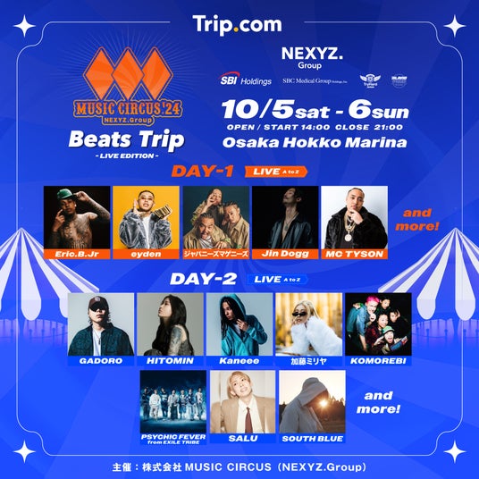 株式会社MUSIC CIRCUS(所在地:東京都渋谷区)は、2024年10月5日(土)・6日(日)、大阪北港マリーナ (所在地:大阪市此花区)にて開催する、「MUSIC CIRCUS’24 LIVE EDITION」の第五弾出演アーティストを発表いたします。