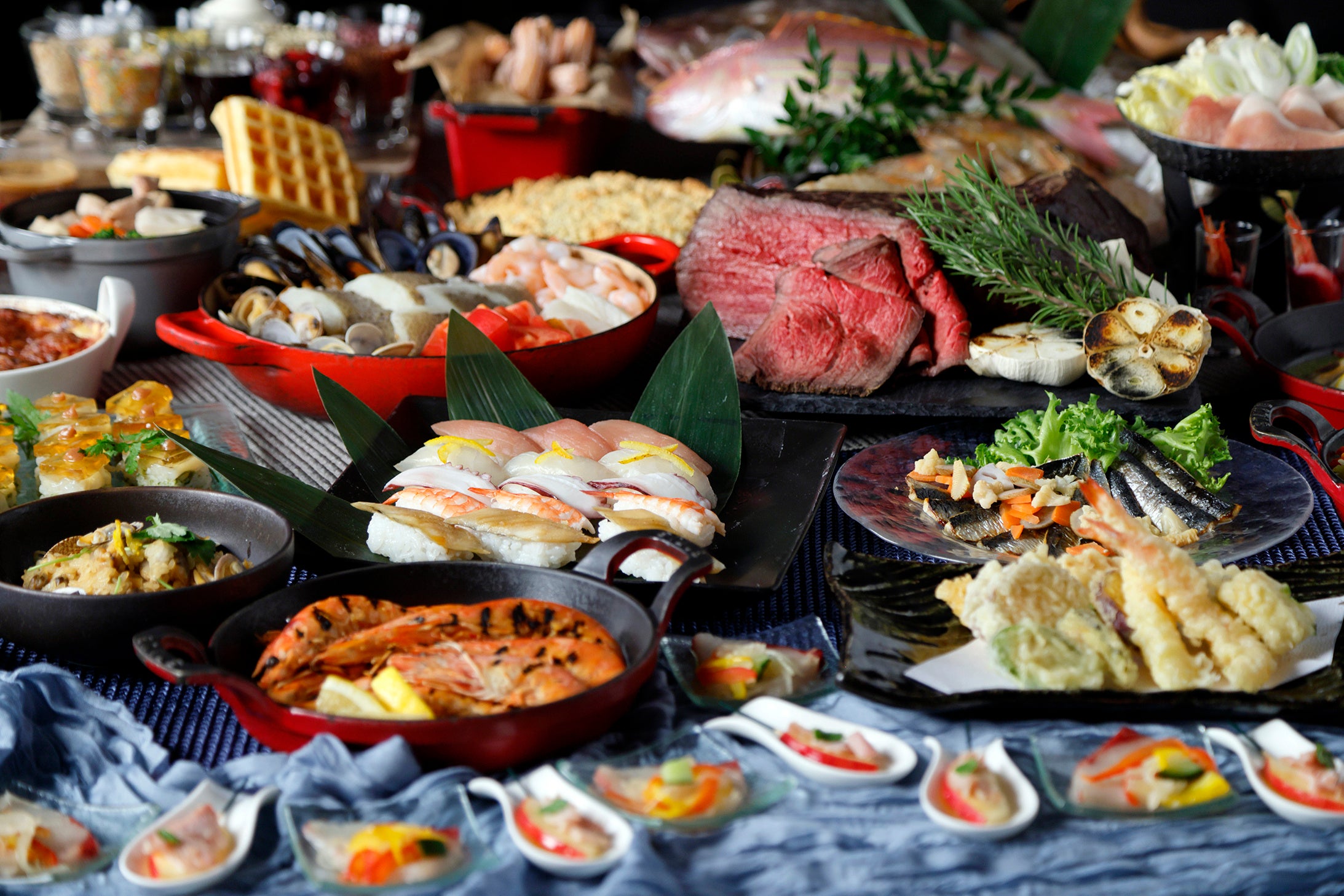 海の恵みをテーマに、シーフードを使った多彩なメニューが勢ぞろいします。目の前で焼き上げる「有頭海老のグリル」や、魚介の旨みを凝縮した「魚介とトマトの白ワイン蒸し」、ランチでは醤油漬けの海老を使った「カンジャンセウの太巻き」を、ディナーでは5種類の「にぎり寿司」をご用意。さらに、シーフード以外にも「国産牛のローストビーフ」や揚げたての「天ぷら」、お席の小鍋であつあつをお召し上がりいただける「豚肉のしゃぶしゃぶ」など、この冬限定の特別フェアをぜひご堪能ください。