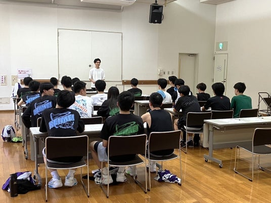 また、試合の合間に進路ガイダンスを実施することで、学校やご家庭とは違った環境で将来について考えるきっかけを与えると同時に、先輩後輩の交流促進を促しています。