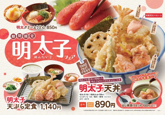 サトフードサービス株式会社(本社・大阪府大阪市、代表取締役社長・杉本 貴之)が運営する「天丼・天ぷら本舗 さん天」では、2025年2月13日(木)より「明太子フェア」を開始します。しっかりとした辛みと旨みを感じることができる「明太子」を揚げたての天ぷらに仕立てました。