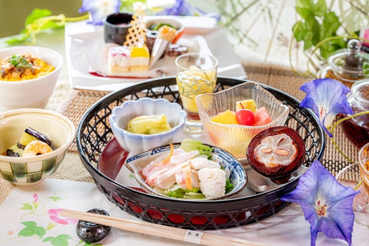 前回1,000食以上を売り上げた日本料理「花菊」の人気メニュー「和風アフタヌーンティー」をより一層魅力的にアップグレードした内容でご提供いたします。今回の和風アフタヌーンティーのテーマは「夏」。和食店舗ならではの繊細な技で素材を活かし、涼を感じる贅沢なメニューをお楽しみいただけます。