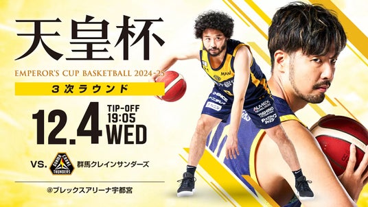 天皇杯3次ラウンドは、12月4日(水) 19:05よりブレックスアリーナ宇都宮にてB1東地区所属の群馬クレインサンダーズと対戦します。