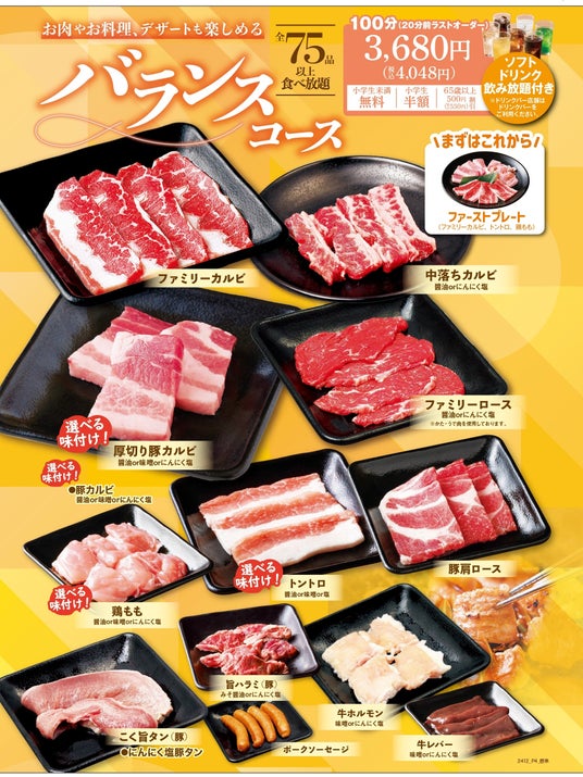 【安楽亭】春休み!「食べホ学割」で思い出づくりを。学生グループ限定食べ放題「バランスコース」700円(税込770円)OFF!学生の皆さんを応援!