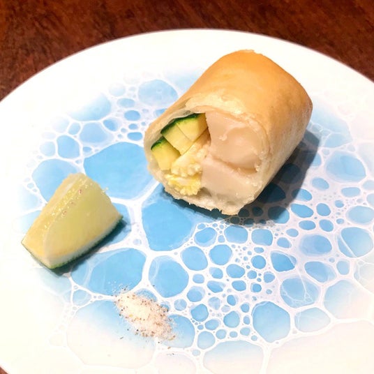 また、完全予約制の当店はコースのみをご提供。中国料理をベースに各国の調理法と、気仙沼産フカヒレや鮑などの高級食材や、日本各地の野菜、魚貝、和牛を取り入れた独自のお料理を20皿を越える少量多皿でご提供しております。