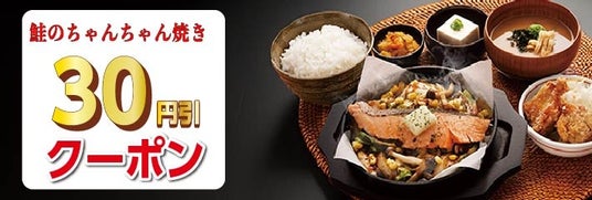 宮本むなし公式アプリでは、1月28日まで何度でも使える「鮭のちゃんちゃん焼き定食 各種30円引きクーポン」を配信いたします。会員の方限定でご利用いただけるクーポンですので、この機会にぜひ宮本むなし公式アプリをダウンロード&会員登録ください。
