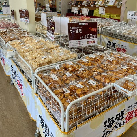海鮮せんべい塩竈は、「美味しさと楽しさのテーマパーク」をコンセプトに、約20種類以上の海鮮せんべいを取りそろえる観光型店舗です。