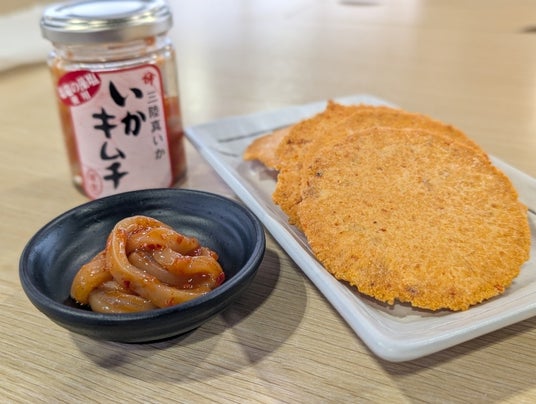 本商品は、いかの塩辛で知られる平塚商店の「いかキムチ」と、海鮮せんべい塩竈のせんべいを組み合わせた新感覚の商品です。高校生のアイデアをもとに開発され、地域の魅力を発信する取り組みとして実現しました。
