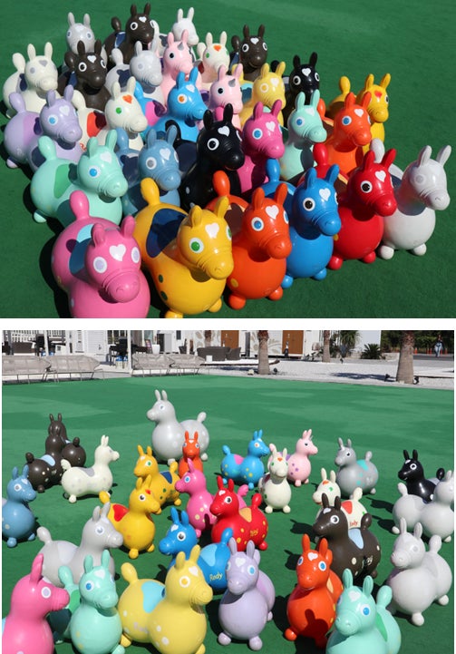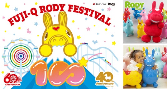 RODYは馬がモチーフで、家族や子どもたちが遊びながら運動神経やバランス感覚を養うことができるバランスボールトイです。イベント会場のセントラルパークには、双方の周年を掛け合わせた(富士急ハイランド60周年+RODY誕生40周年)合計100匹のRODYが放牧され、子どもたちが自然とまたがって自由気ままに活発に遊ぶことができます。また、お兄さんお姉さんとRODYに乗って楽しめる参加型ダンスパフォーマンスや、一緒に撮影が出来るおともだちグリーティングの他、RODYを使用した輪投げチャレンジやスタンプラリーなどをご家族みなさまで楽しむことが出来ます。