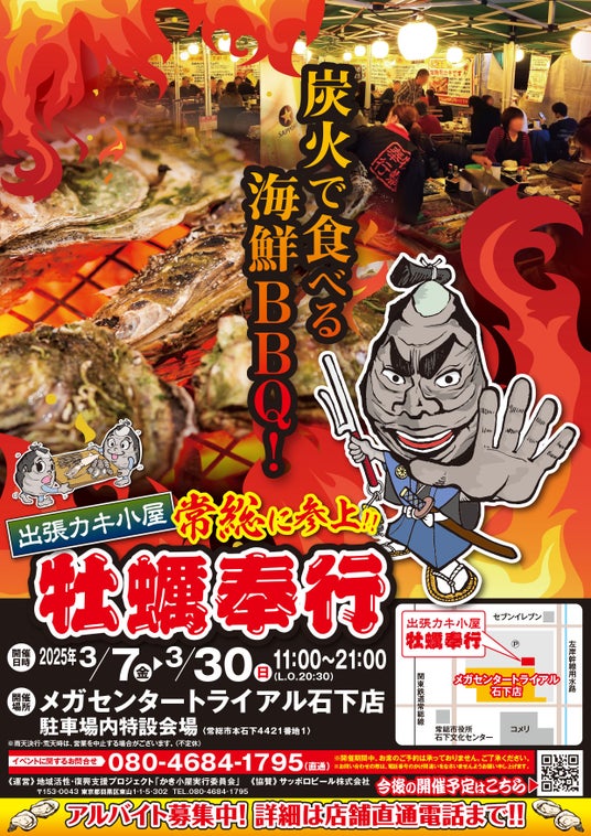 【常総市】メガセンタートライアル 石下で、出張カキ小屋BBQ!! 期間限定開催!!《 宮城県産殻付き牡蠣が約1kg880円!! 》