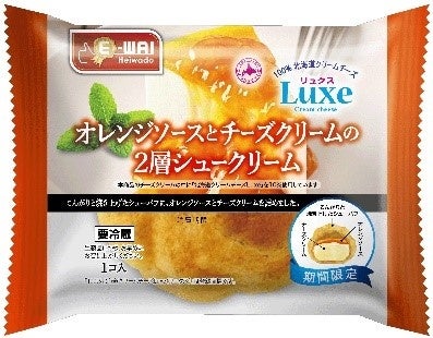 「E-WA! オレンジソースとチーズクリームの2層シュークリーム」は、100%北海道産生乳を使ったクリームチーズ「Luxe」を使用したさっぱりとしたチーズクリームに、相性抜群のオレンジソースを合わせた2層仕立てのシュークリームです。大人気のE-WA! シュークリームシリーズから新フレーバーとして、11月・12月だけの期間限定販売です。