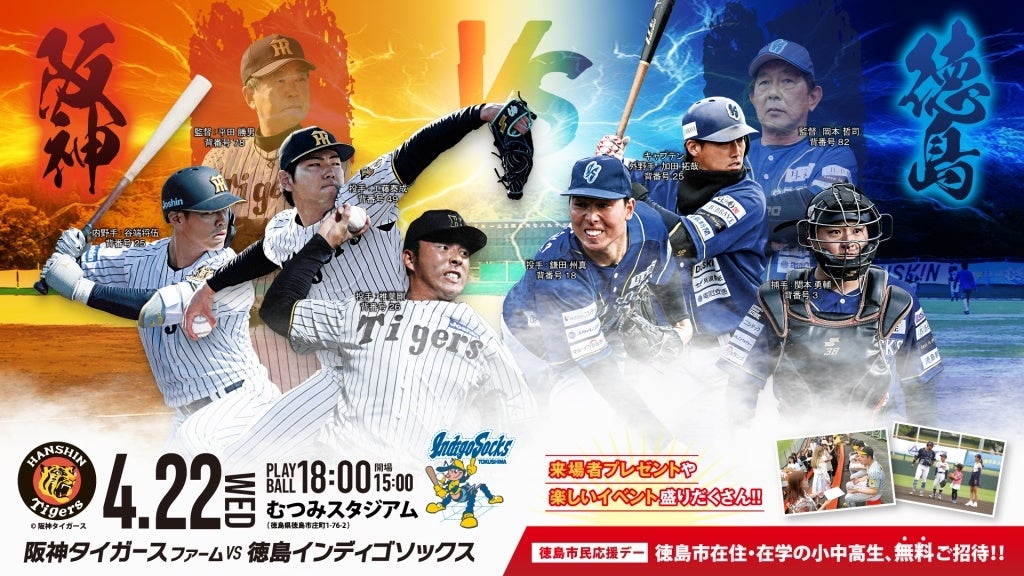 【徳島市】交流試合 阪神タイガース(ファーム)戦 4月22日(水曜日)開催決定!徳島インディゴソックス「徳島市民応援デー」を開催
