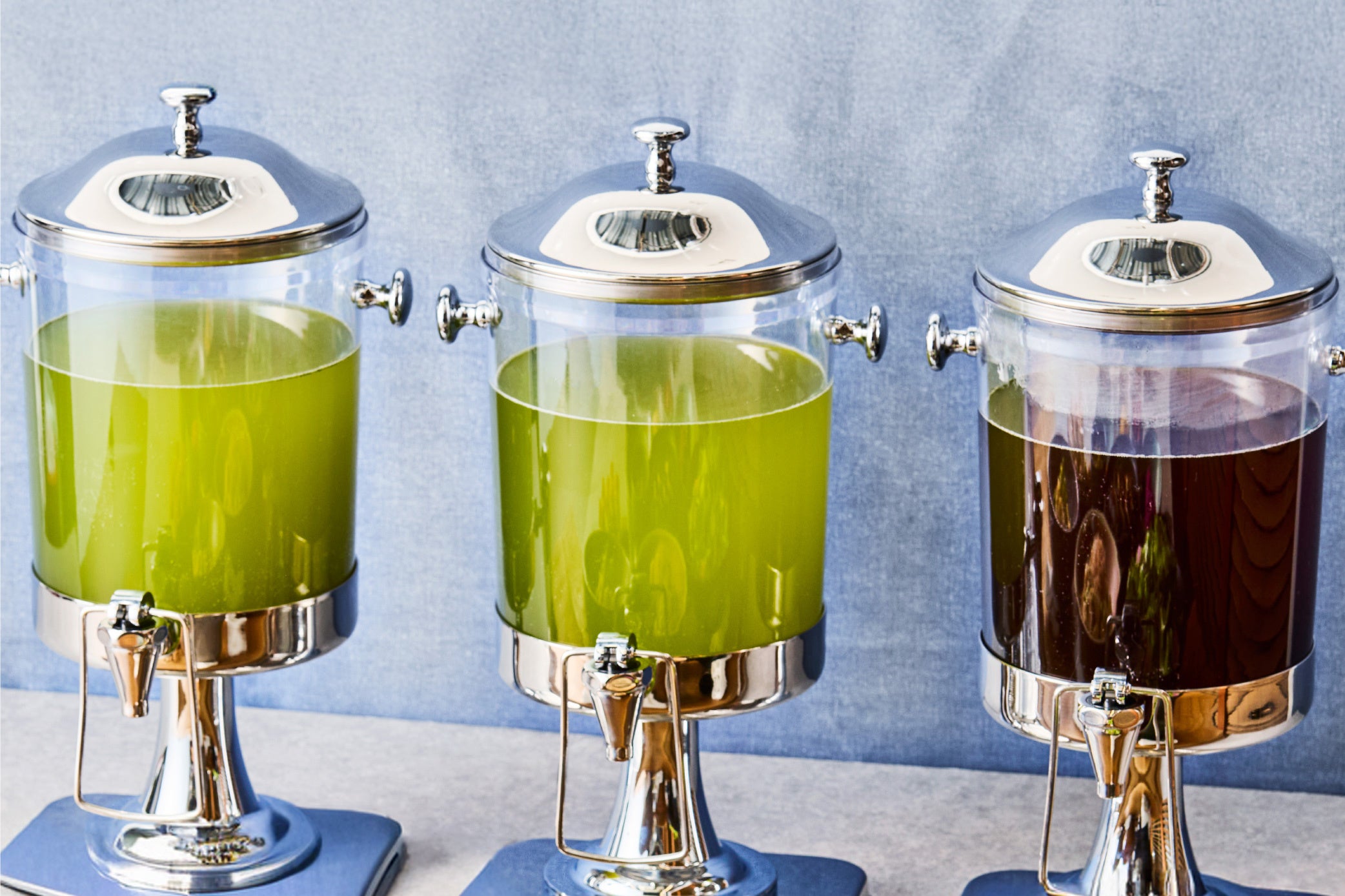 お食事の始めには低温で抽出した甘みのある水出し茶、食後には香りが際立つ温かいほうじ茶など、朝のビュッフェで親しまれてきた「飲み比べ」の楽しみ方を、お好きな丼やデザートとのセットで体感いただけます。