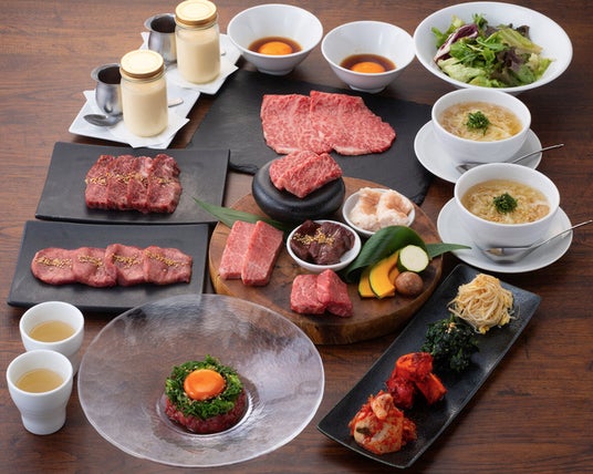 (キムチ・ナムル盛り合わせ/USHIHACHIユッケ/牛8グリーンサラダ/上タン塩/名物 とろ肉3秒炙り/焼肉4種盛り合わせ/和牛ホルモン2種盛り合わせ/氷結しこしこ冷麺/選べるデザート)