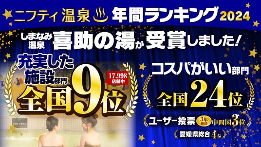 しまなみ温泉 喜助の湯が【日本一サイクリストが集まる温泉】の称号を4年連続いただきました。