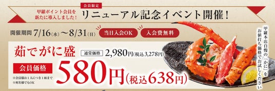 【愛知県】2025年7月16日(水)に「半田甲羅本店」がリニューアルオープン!茹でがに盛を会員価格(当日入会OK)638円でご提供!