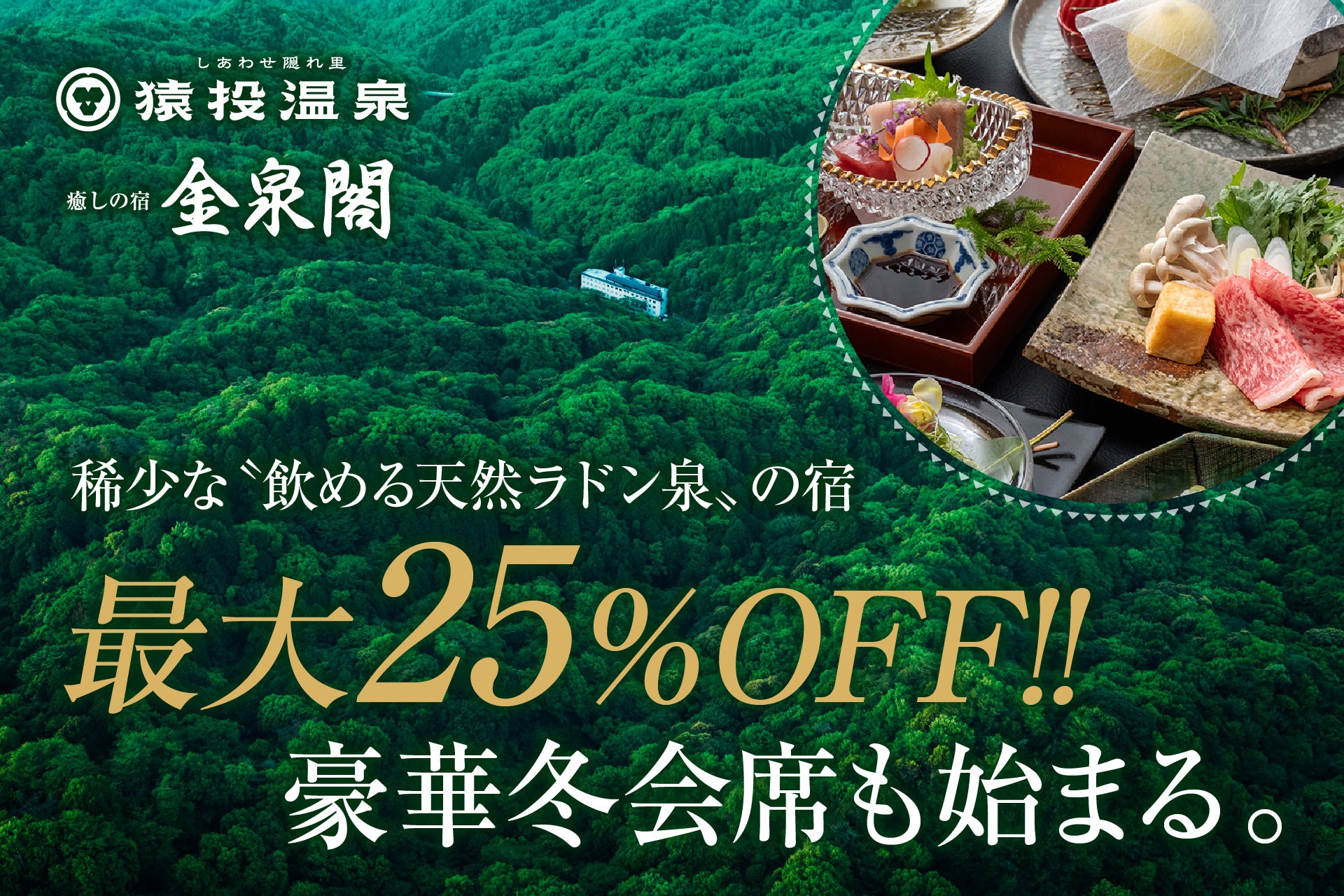 しあわせ隠れ里 猿投温泉 癒しの宿 金泉閣(所在地:愛知県豊田市加納町馬道通21、運営:豊田温泉開発株式会社)は、2025年10月20日に増室リニューアルをし、おかげさまで多くのお客様にご利用いただいております。増室リニューアルの記念と、日頃からのご愛顧いただいているお客様へ感謝の気持ちを込めて、お得にご利用いただけるプランを順次開催!ご利用いただくお客様へ心温まるひとときと“しあわせ”をお届けします。