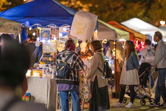 会場内では、手作りの温もりを感じられるクラフトマーケットも開催されます。個性豊かなアクセサリーやインテリア雑貨、季節を感じるアイテムなど、作り手の想いが込められた商品が並びます。お気に入りの一点物を見つける楽しさを、大切な人と共有しながら特別な夜をお過ごしください。