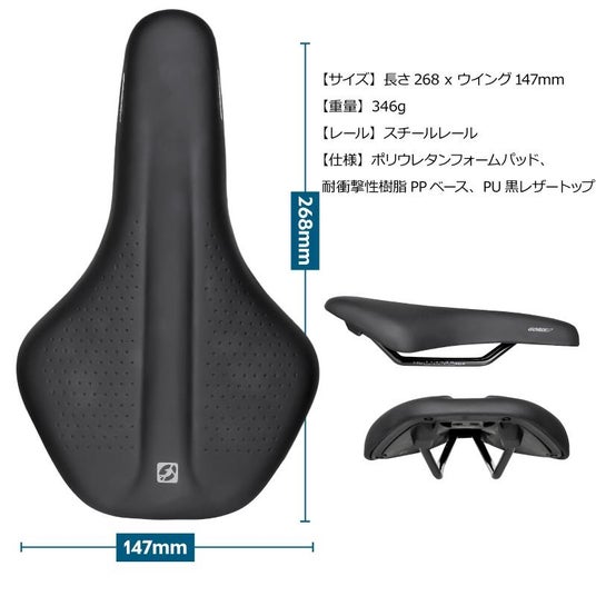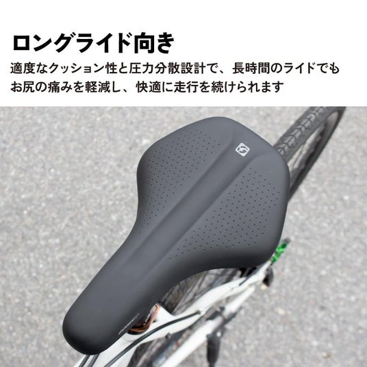 このサドルは快適性と耐久性を兼ね備えた設計で、ロングライドでもお尻の痛みを軽減します。