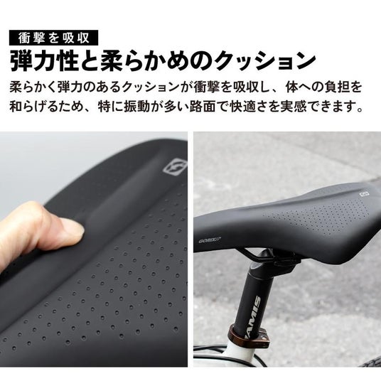適度なクッション性と圧力分散設計で、長時間のライドでもお尻の痛みを軽減し、