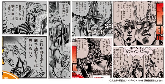 蘇る「北斗の拳」の名シーンの数々。エナジードリンクを飲みながら、漫画の世界に没入してしまいます。