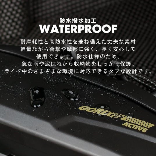 防水仕様のため、急な雨や泥はねから収納物をしっかり保護します。