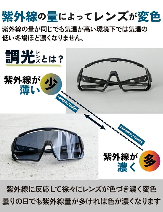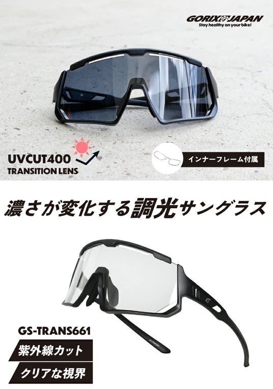 GORIX GS-TRANS661 サイクルサングラス 「スポーツ好きに選ばれる!高機能サングラス」 ロードバイクやスポーツ、自転車通勤などあらゆるシーンで活躍する多機能調光サングラスです。