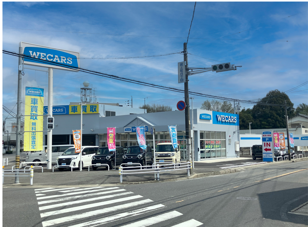 WECARS豊田店は、豊田市の元町通り沿い・宮上町8丁目交差点近くというアクセスしやすい好立地に位置しています。お客様のご自宅への出張査定にも対応し、地域の皆さまに寄り添うカーライフパートナーとして選ばれる店舗を目指してまいります。