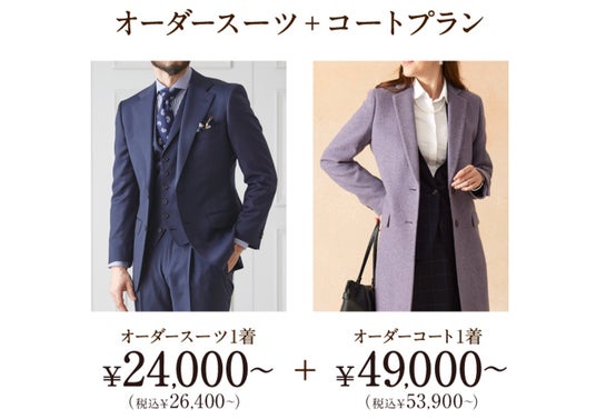 春モノ新作×オールシーズンモノ×ビジネス×礼服、メンズ、レディースなど、お好きな組み合わせでオーダーが可能です。また、お知り合いやご家族と1着ずつのオーダーでもフェア適用となります。